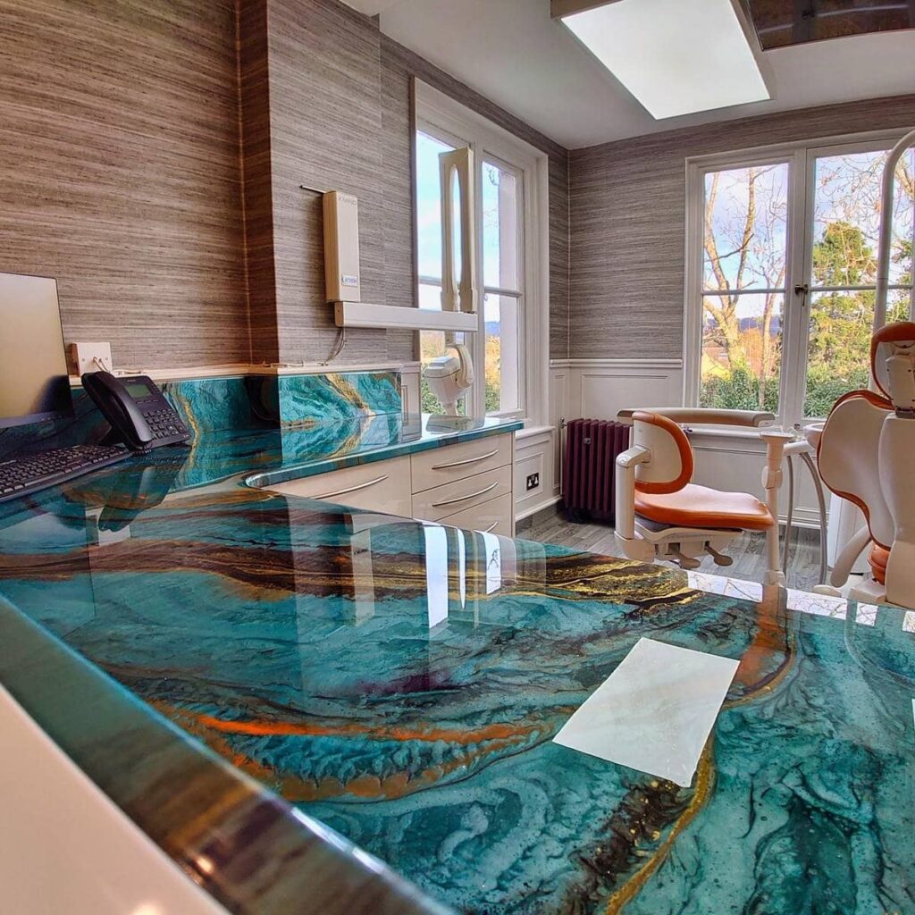 Our Epoxy masterpieces provide a prompt, uncomplicated method for renovating current countertops. Unique, personalized patterns and shades! Fashion your kitchen, reception desk, or bar counter with a robust, enduring layer.